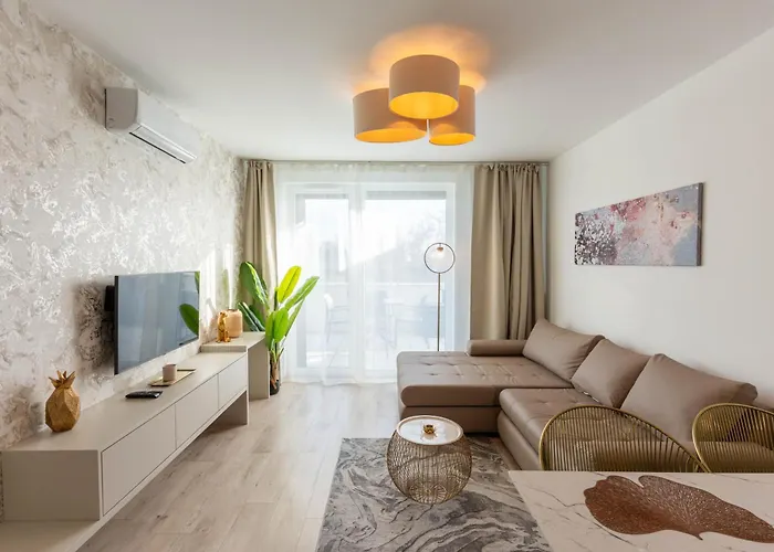 The beachfront 1-bedroom Lakeside 101 Apartment Fonyod lies in a beach area of Fonyod, approximately 25 minutes' walk from Varhegyi kilato. This 50 m² apartment is fitted with a terrace which boasts views of the garden.